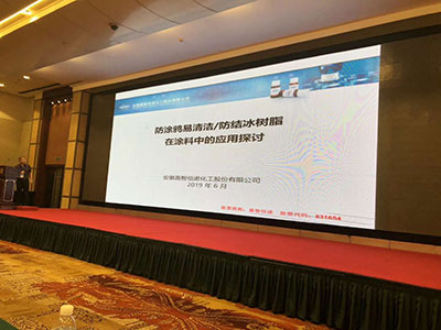 我司總經(jīng)理陳永康先生在大會上做《防涂鴉易清潔和防結(jié)冰樹脂在涂料中的應(yīng)用探討》報告。從防涂鴉易清潔和防結(jié)冰樹脂的反應(yīng)機理說起,闡明兩種樹脂在涂料中的優(yōu)點。通過在涂料中的應(yīng)用,得出兩種樹脂優(yōu)良的性能。此次報告引起了業(yè)內(nèi)強烈的反響。
