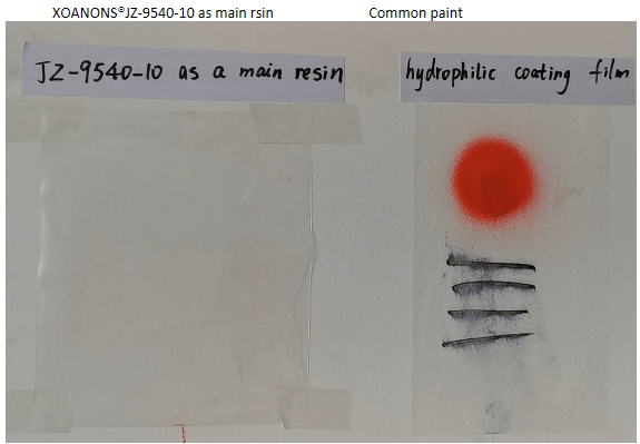 Below, after we prepare the varnish with JIAZHI ?JZ-9540-10/9582 as the main resin, we test the characteristics of the coating through experiments. Some projects are tested compared with an international brand of hydrophilic paint at the same time to compare the different performances on different types of products.